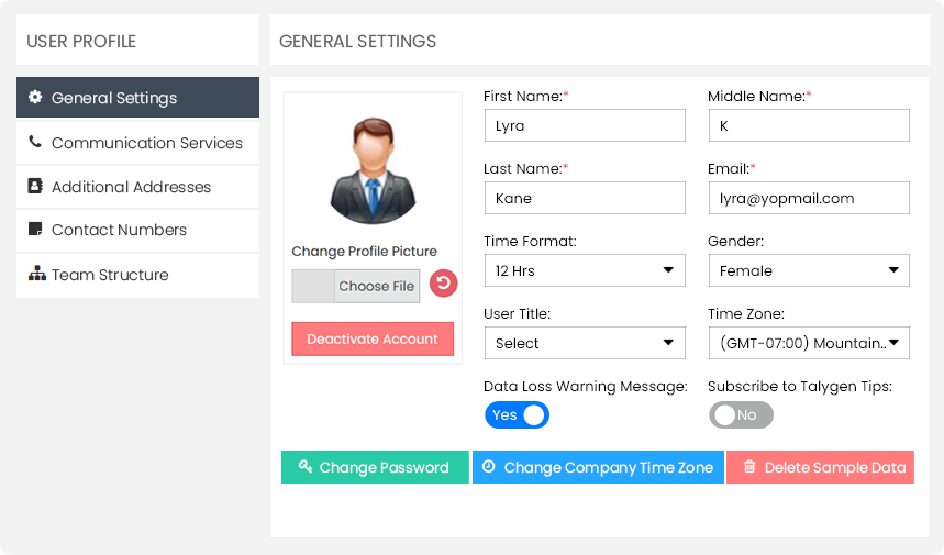 Questions or comments regarding this Policy should be submitted to Talygen at: